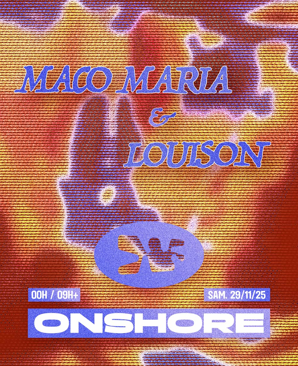 Pour le premier rendez-vous de la saison 2025/2026, ONSHORE explore les dernières traces de soleil. L’énergie sera sans limite grâce à une selecta de disques mêlant house, techno, tech house, progressive, rock… et bien plus encore. Une aventure façonnée par les quatre mains d’or de Louison & Maco Maria.